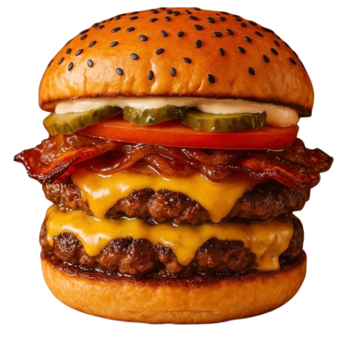 Doble hamburguesa, triple queso cheddar, tocino, pepinillos, tomate, cebolla caramelizada y salsa Big Mac. Pide Ahora